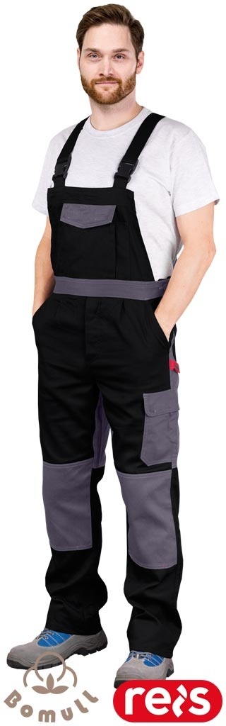 SPODNIE OCHRONNE OGRODNICZKI ROBOCZE BAWEŁNIANE, REGULACJA W PASIE, KIESZENIE NA NAKOLANNIKI, BOMULLX, CZARNO-SZARE