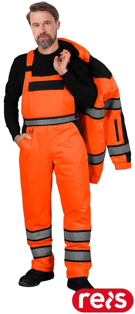 SPODNIE OCHRONNE OGRODNICZKI ZIMOWE OSTRZEGAWCZE OCIEPLANE MILLING POMARAŃCZOWO-CZARNE