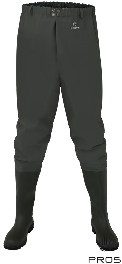 Wysokiej jakości spodnie do pasa z wgrzanymi na stałe kaloszami.