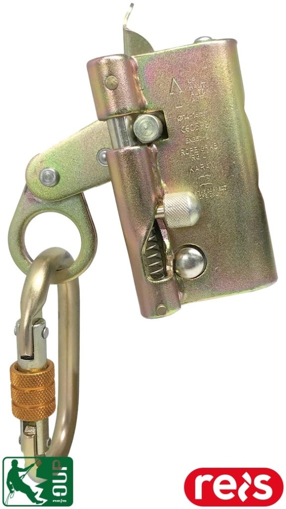 - wyposażona w stalowy karabińczyk do połączenia z uprzężą użytkownika
