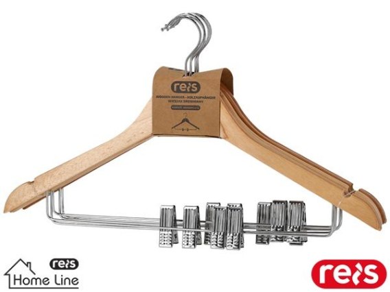 - drewniany z metalową poprzeczką wyposażoną w klipsy