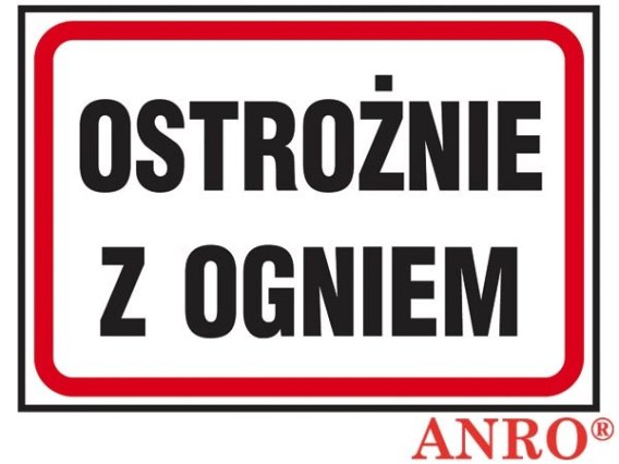Znak ochrony ppoż. „Ostrożnie z ogniem" ZNAK BEZPIECZEŃSTWA - 250x350 mm PŁYTA PCV